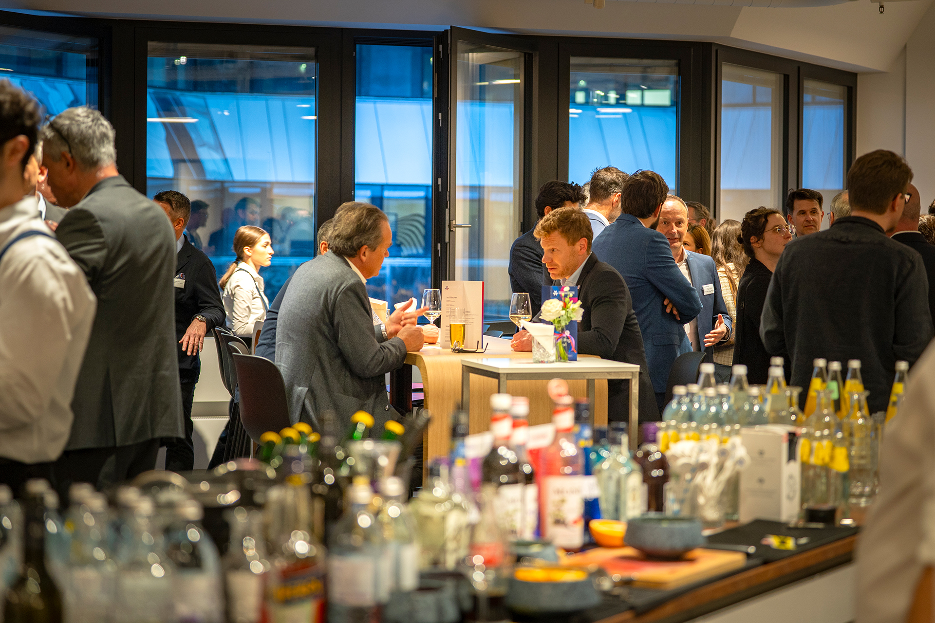 Beim Empfang luden wir unsere Gäste ein, unsere neue Markenwelt zu entdecken – begleitet von individuell kreierten Cocktails in den Farben ApoVerlag-Rot, Diagnosia-Blau und AustriaCodex-Lila, feinem Flying Finger Food und angenehmer Musik.