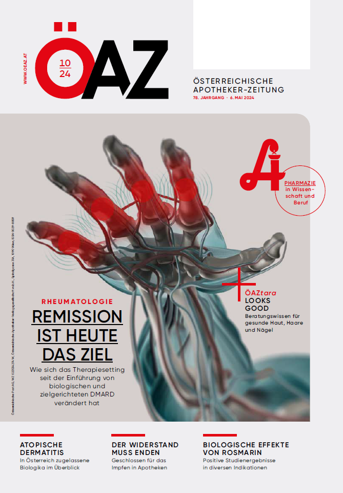 Über die ÖAZ Online (www.oeaz.at) ist dies jederzeit und überall möglich. Neben aktuellen Artikeln zu pharmazeutischen und medizinischen Themen finden Sie hier standes- und gesundheitspolitische Berichterstattung, behördliche Mitteilungen, einen Veranstaltungskalender sowie den Pharmazie-Podcast „ÖAZ im Ohr“.