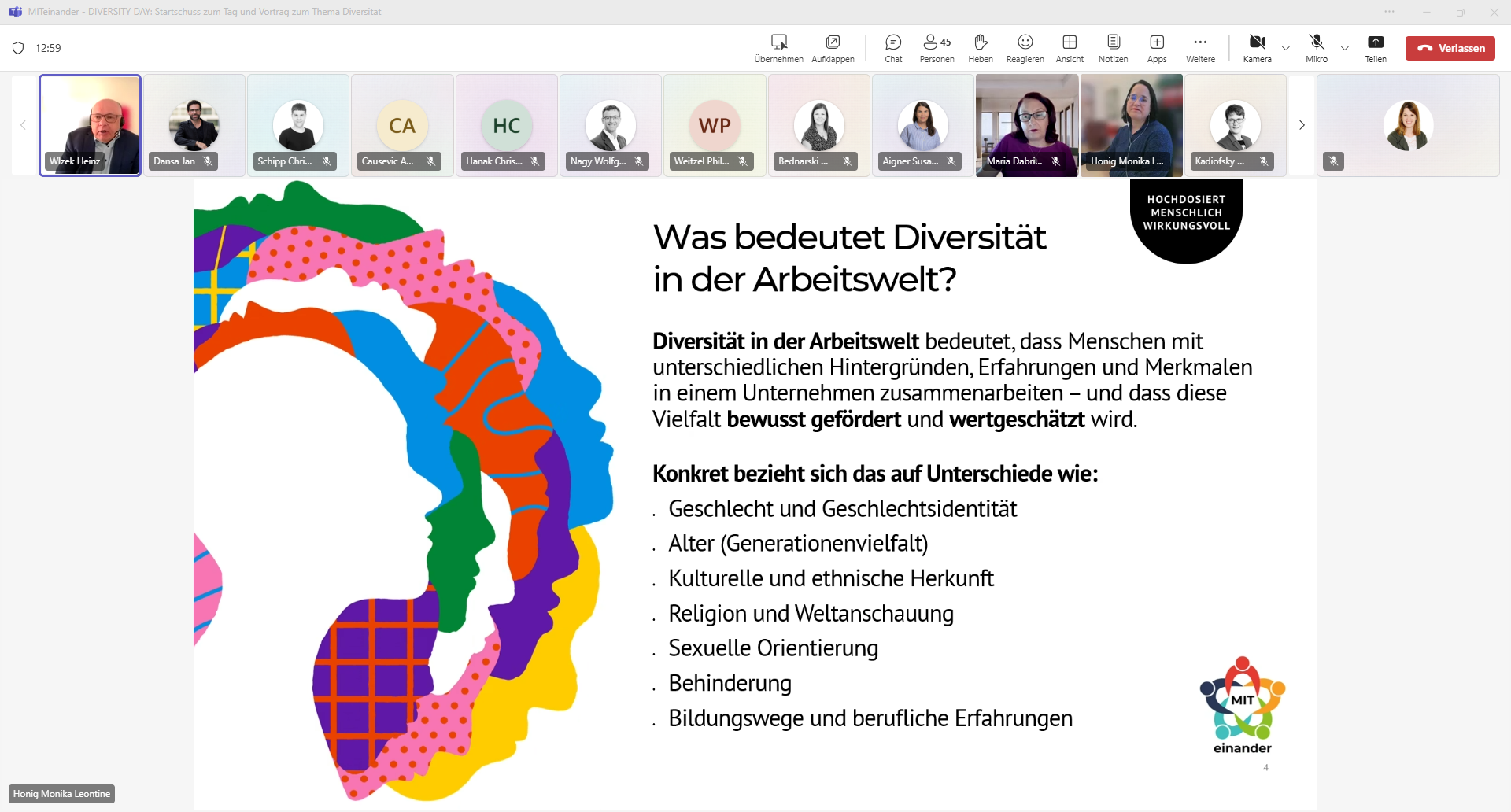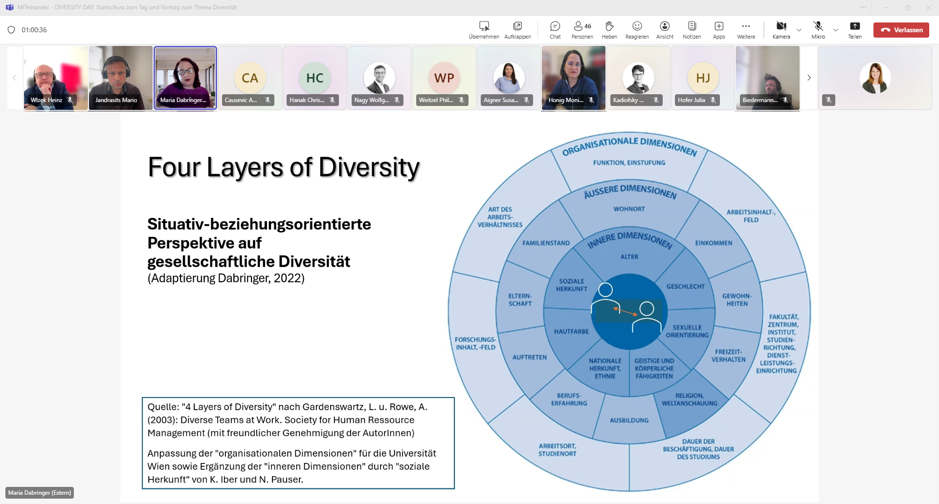 Zum Auftakt hat uns Maga Drin Maria Dabringer – Kultur- und Sozialanthropologin sowie Sozialwissenschaftlerin an Universitäten und wissenschaftlichen Institutionen im In- und Ausland sowie selbstständige Unternehmensberaterin, Moderatorin, Trainerin & Personalentwicklerin – mit ihrem spannenden Vortrag „Diversität(skompetenz) in institutionellen Kontexten: Chancen und Herausforderungen“ begeistert.