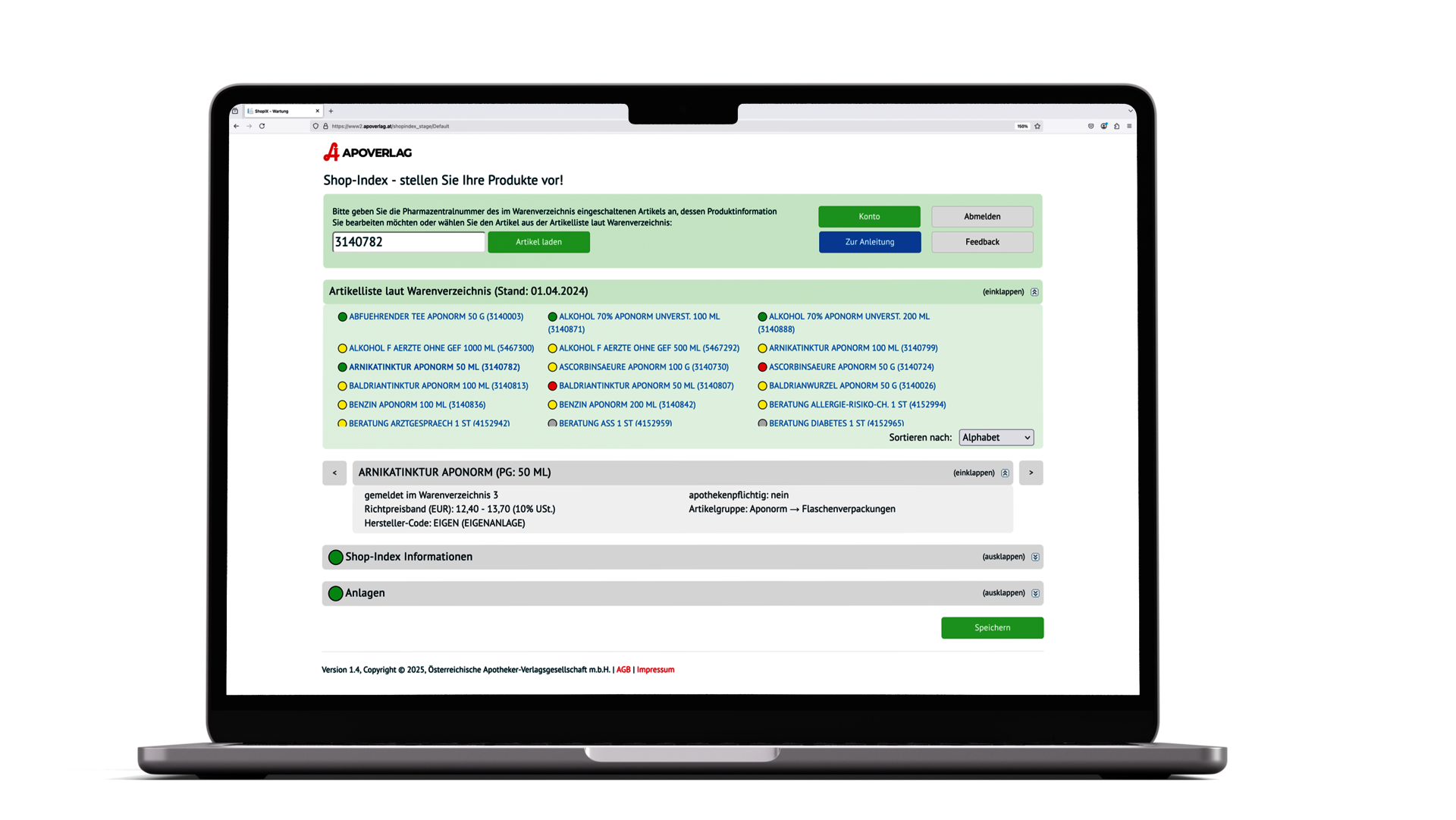 Der Shop-Index ist eine zentrale Datenbank, die Apotheken unterstützt, ihre digitalen Kanäle – vom Webshop bis zu POS-Lösungen – mit vollständigen, aktuellen und geprüften Produktinformationen zu versorgen. Die Daten stammen direkt von den Herstellern oder Datenvertragspartnern. Kurz gesagt: Er ist die Grundlage für modernen Apothekenservice im digitalen Zeitalter.