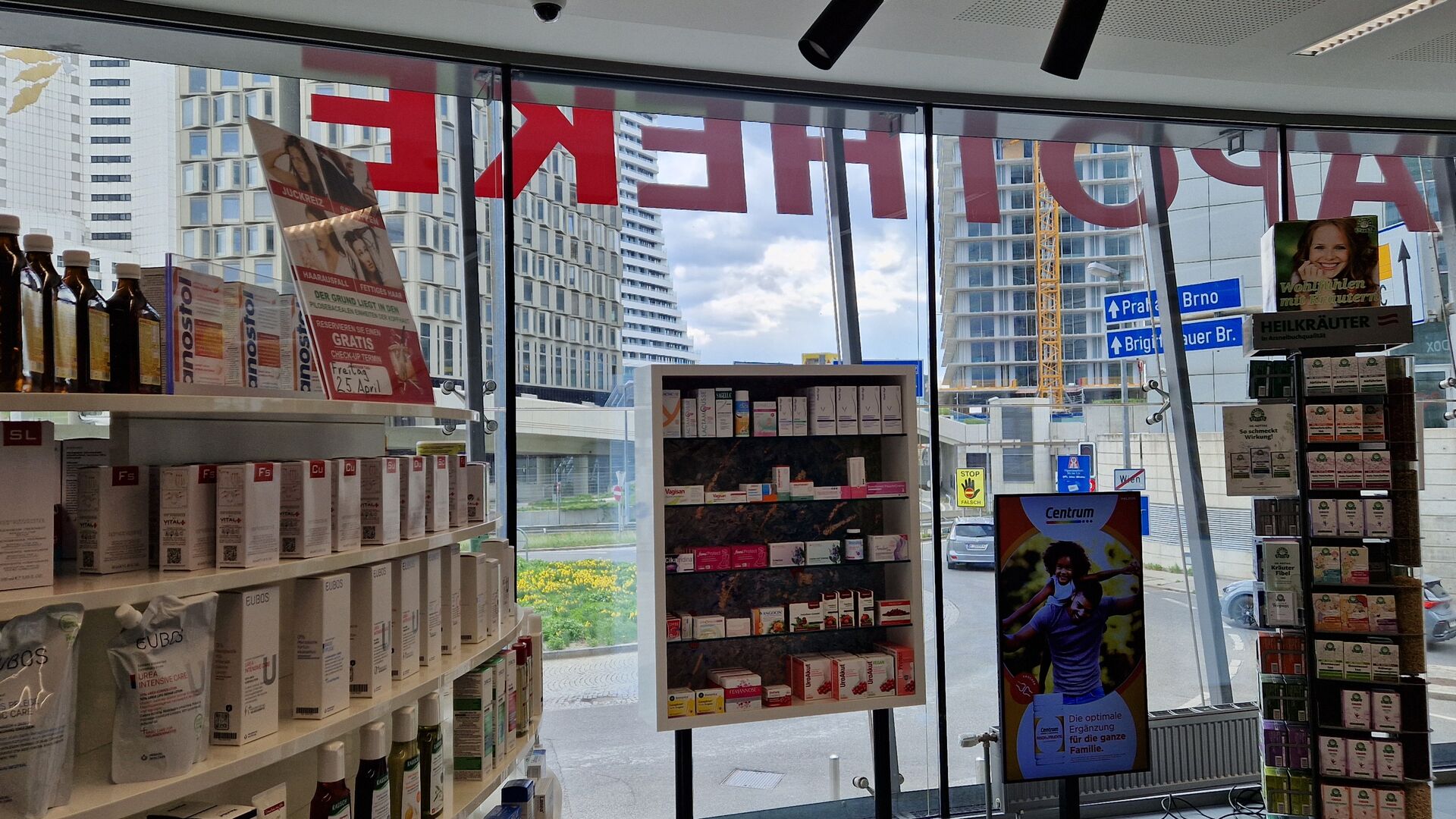 Mittags am Donnerstag, den 10. April 2025, machten sich unsere Apothekenbetreuer:innen Wolfgang Nagy und Veronika Stawowy auf den Weg zur Donauplatte und besuchten Mag. pharm. Dr. Isabella Gazar und ihr Team in der neu eröffneten „Apotheke Donau City“ (ehemals Apotheke im Andromeda Tower), um etwaige offene Fragen im Umgang mit dem AVS und dem neu angeschafften Kommissionierautomaten zu diskutieren.