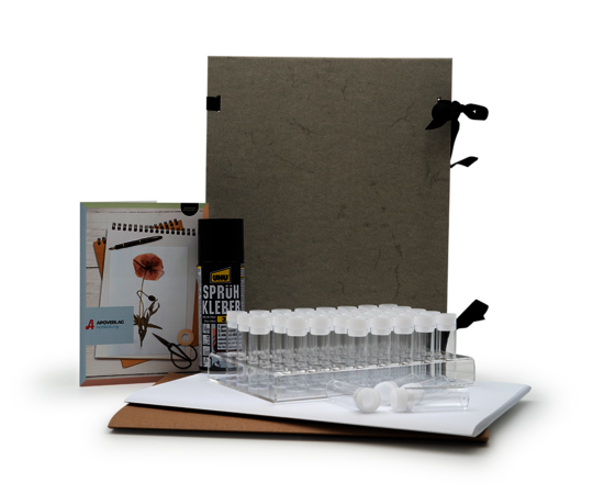 Materialien und Hilfsmittel für pharmazeutisch-kaufmännische Assistent:innen. Probenröhrchen, Herbarium-Sets und Lernunterlagen für Ausbildung und Praxis.